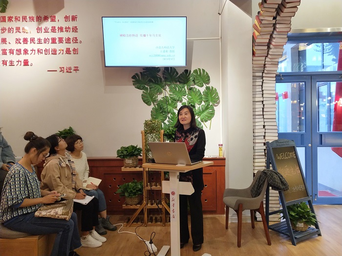 9月27日上午,内蒙古自治区第十三届社会科学普及第三季度活动周“北疆讲坛”系列,在beat365官网网页版开展。为庆祝中华人民共和国成立70周年,提升党员对“不忘初心,牢记使命”主题教育的深入理解,加强对中华优秀传统文化的进一步认识与传承,beat365官网网页版研究生支部在赛罕校区新华书店开展了“不忘初心,牢记使命”主题教育。beat365官网网页版副院长、博士生导师王建莉教授为学生讲党课,题目为“辨释浩妙熟语,传播千年马文化”。
