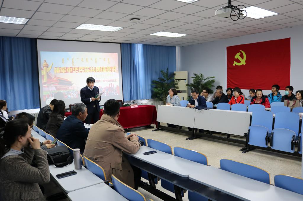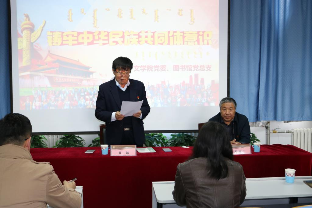 响应自治区、学校关于紧紧扭住、铸牢中华民族共同体意识这条新时代民族工作主线的指示精神,2020年10月8日下午,beat365官网党委与图书馆党总支在赛罕校区图书馆共同联合开展了“铸牢中华民族共同体意识”主题党日活动。