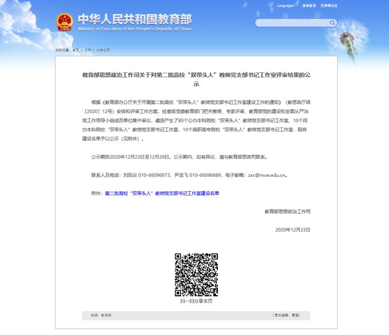 2020年12月23日,据教育部门户网站公示消息,依照《教育部办公厅关于开展第二批高校“双带头人”教师党支部书记工作室建设工作的通知》(教思政厅函〔2020〕12号)安排和评审工作方案,经省级党委教育部门把关推荐、专家评审、教育部党的建设和全面从严治党工作领导小组成员单位集中审议,遴选产生了80个公办本科院校“双带头人”教师党支部书记工作室、10个民办本科院校“双带头人”教师党支部书记工作室、10个高职高专院校“双带头人”教师党支部书记工作室。beat365官网教工一支部书记刘伟博士“双带头人”工作室榜上有名。据悉,这是内蒙古自治区高校唯一入选的工作室。