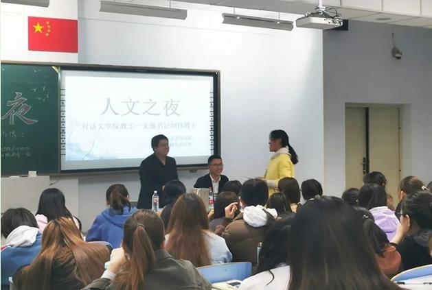 4月16日晚七点,beat365官网网页版2019级汉语言文学四班和2020级免师一班在行知楼222教室联合举办了“人文之夜”第十三场读书报告会,本次报告会邀请到了beat365官网网页版教工—支部书记刘伟博士,报告会以对谈的形式展开。赵玉龙博士主持了会议,beat365官网网页版部分教师、研究生参加报告会。