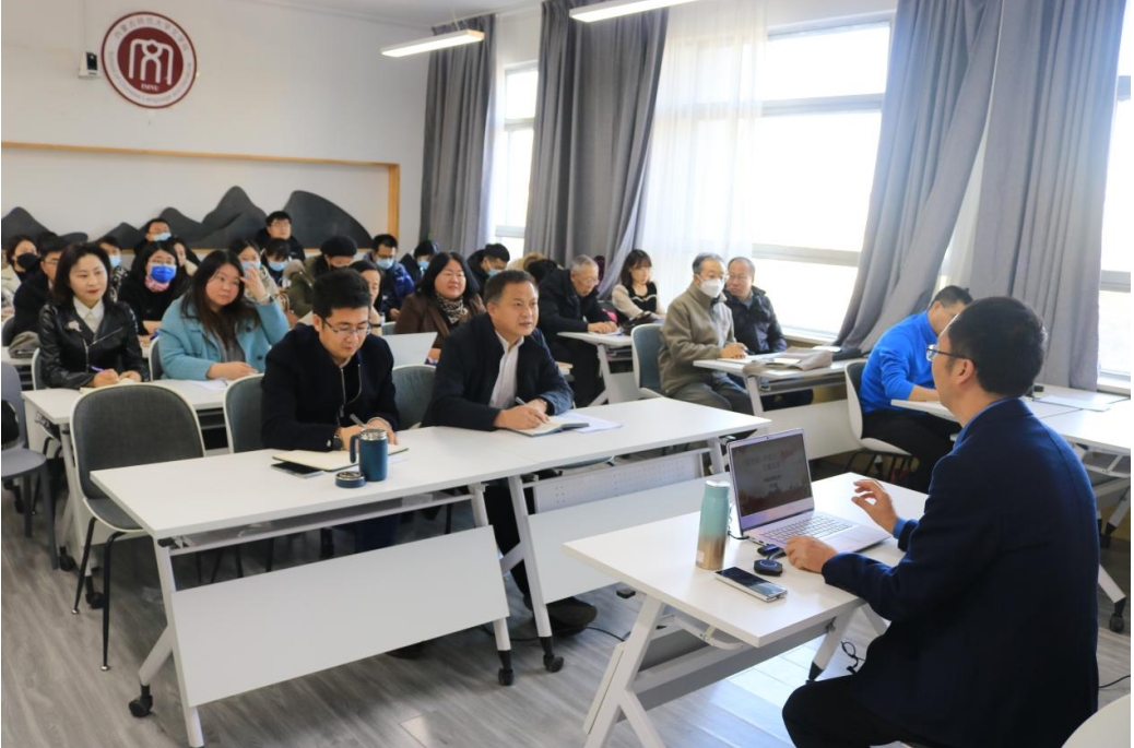齐义军教授围绕深刻领会把握“五句话”的事实和道理;深切领会体悟习近平总书记对内蒙古的关怀厚爱和期望重托;深入学习领会、全面准确把握国务院印发的《关于推动内蒙古高质量发展奋力书写中国式现代化新篇章的意见》等,结合具体事例,深入浅出地为学院教师进行了生动地宣讲。