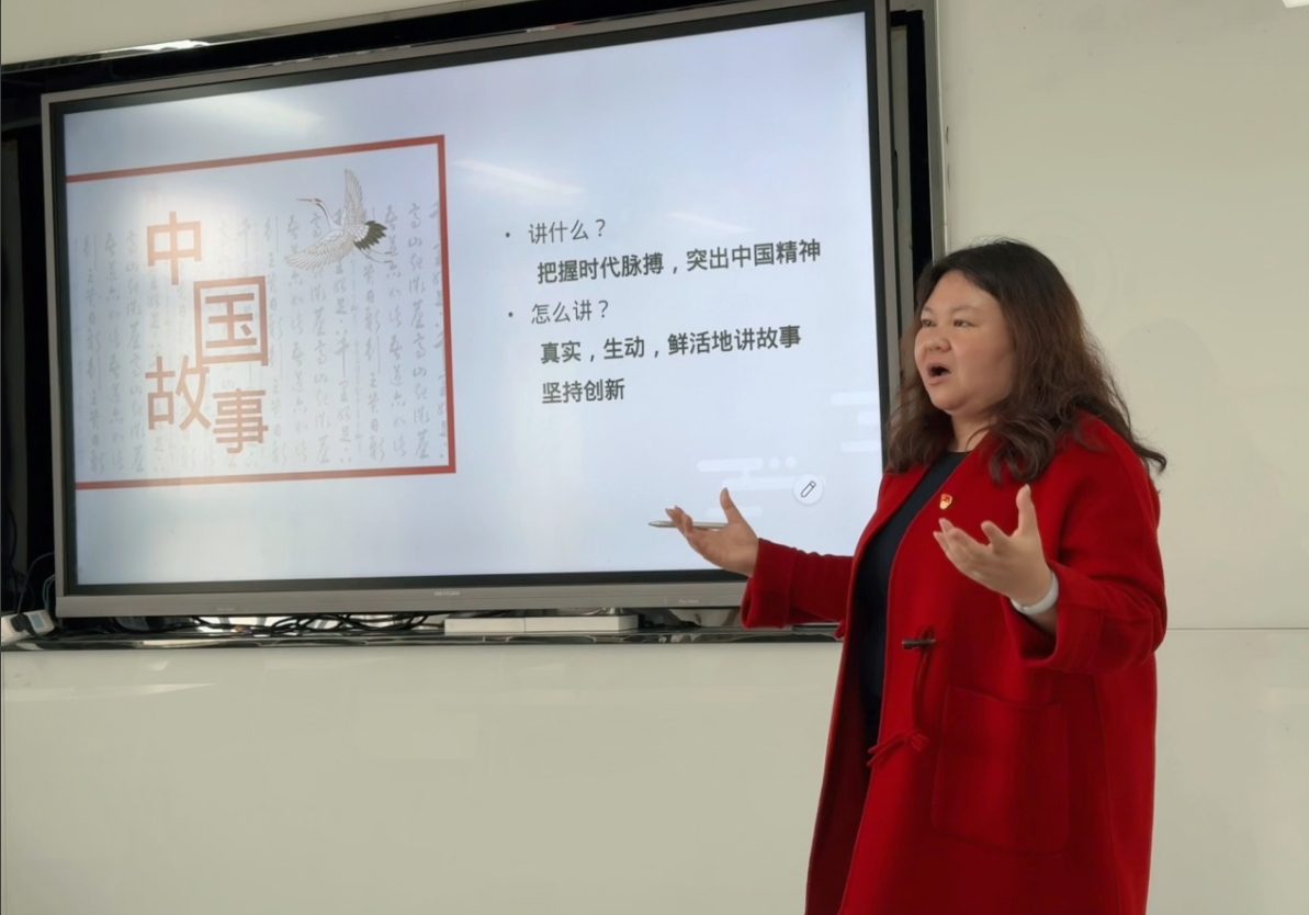 11月14日中午,beat365官网网页版党委委员孙静以《学习贯彻习近平新时代中国特色社会主义思想——讲好中国故事,传播好中国声音》为题,为研究生党支部党员讲专题党课。