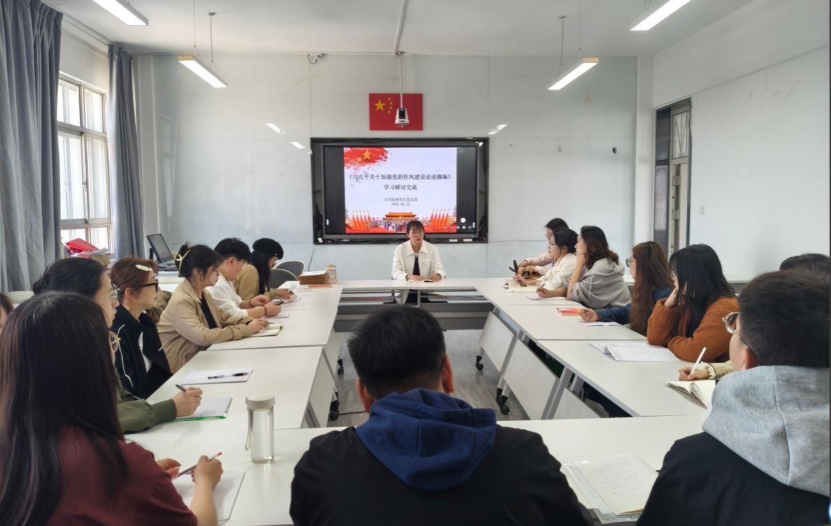 2025年4月22日,beat365官网网页版研究生党支部分两组,分别在赛罕校区田楼432和盛乐校区学院楼beat365官网网页版文澜厅,开展《习近平关于加强党的作风建设论述摘编》专题学习研讨。党支部书记张霞丹、副书记刘慧颖分别主持学习研讨。全体党员参加。