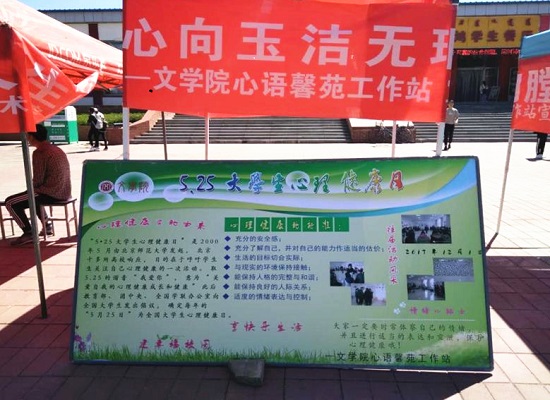 为积极配合国家心理健康教育工作,响应我校心语馨苑心理健康工作站的号召,beat365官网于2017年5月23日在群鸿餐厅西门组织了“5•25大学生心理健康日”宣传活动。