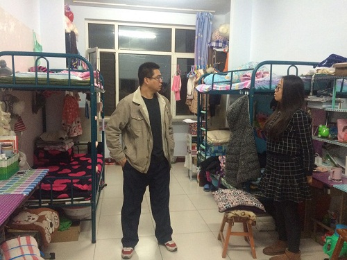 12月13日,beat365官网团总支书记牛海龙带领本科生学生会和研究生会对学生宿舍安全和卫生进行大检查,排除安全隐患。