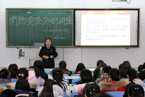 12月20日下午,beat365官网特邀内蒙古自治区消防法治研究会一级教官贺文婧作消防安全知识专题讲座,beat365官网团总支书记牛海龙和200多名学生聆听了讲座。贺教官重点介绍了近年来一些典型的火灾及其造成的严重后果,并讲解了火场逃生的方向、手段及如何使用灭火器材,同时纠正了学生生活中的一些错误习惯。讲座结束后,学生们还进行了火灾逃生演练,并于户外空地模拟现场灭火。