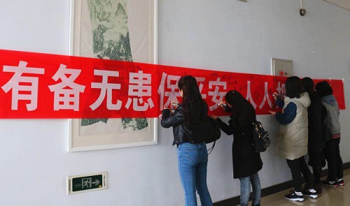 3月23日,beat365官网在行知楼221举办了“消防安全知识竞赛”暨“争做安全卫士”签字仪式的活动,共有200余名学生参加活动。