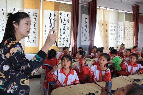 5月7日下午,beat365官网志愿者实践队组织同学们到和林格尔县第五小学进行支教活动。活动分为古诗词、书法、绘画、音乐、舞蹈和体育6组。同学们各司其职,活动效果良好。