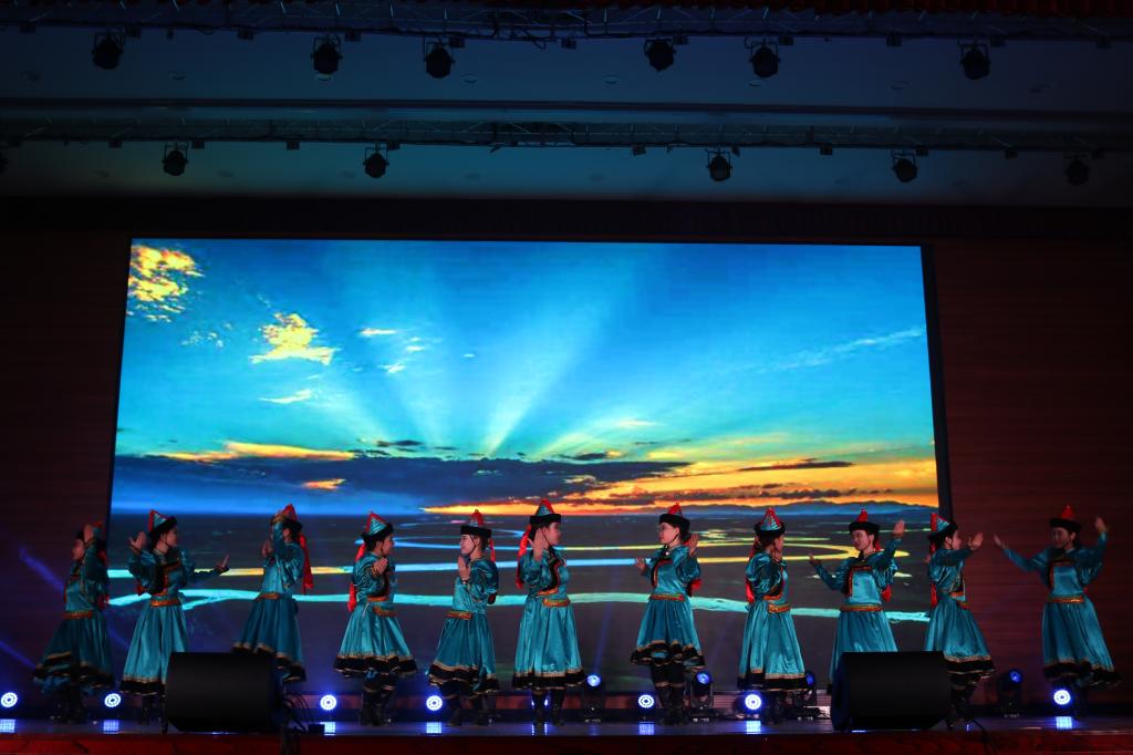 本次晚会以“守望相助,铸牢中华民族共同体”为主题,节目丰富多彩,展现出beat365官网网页版学子们的青春激情。飒爽的开场舞《布里亚特情韵》拉开本场迎新晚会的序幕。随后,beat365官网网页版同学精心准备的乐器合唱歌曲《最美的遇见》、相声《论捧逗》、话剧《丰碑》等节目一一上演。
