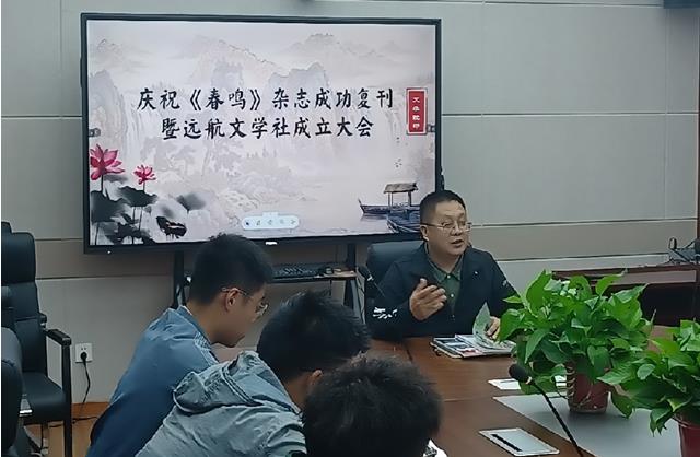 作为远航文学社和《春鸣》杂志的指导教师,刘伟教授在会上详细介绍了《春鸣》杂志及远航文学社的发展历程,总结了《春鸣》杂志深厚的人文底蕴。立足学院的学科特点,刘伟教授分别从职责、引领、干劲、创新、选稿、编排、活动等方面梳理了文学社的主要工作任务,要求同学们明确自身职责、齐心协力,弘扬主旋律,播撒正能量,让《春鸣》杂志成为培养学生人文素养和写作能力的重要阵地。