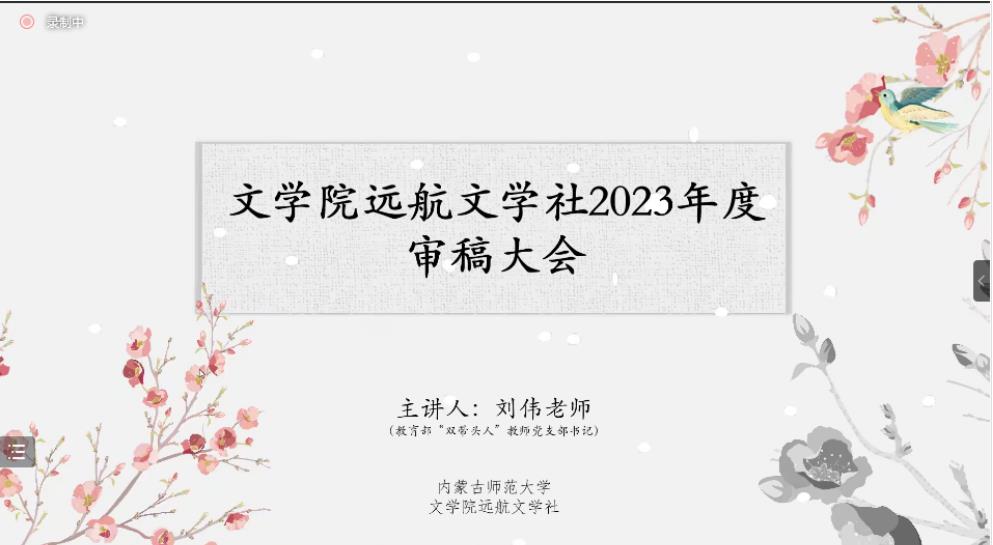 为认真学习贯彻党的二十大精神,培养beat365官网学生的人文情怀,提高学生专业素养,2023年1月29日晚,beat365官网网页版远航文学社召开《春鸣》杂志2023年第1期审稿会。本次会议采取线上方式进行,28名师生参加了本次审稿会。会议由汉语言文学系主任、教工第一支部书记刘伟教授主持。