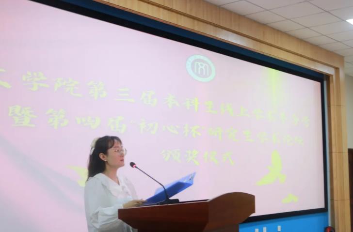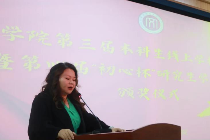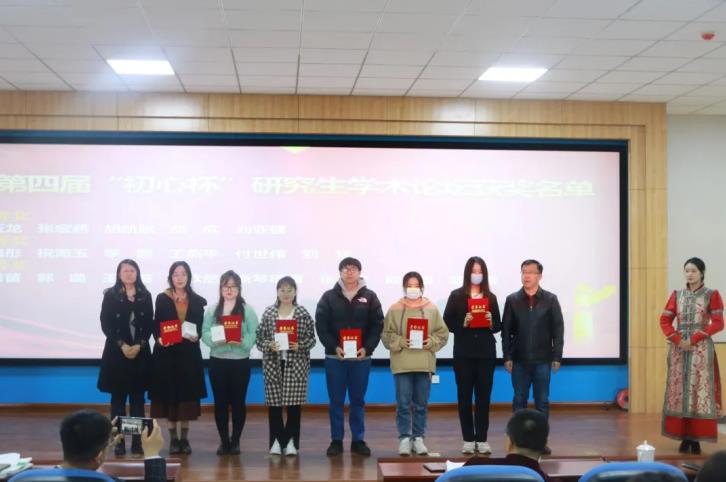 典礼第二项议程,由牛海龙老师宣读第四届“初心杯”研究生学术论坛获奖学生名单。刘玉龙等5名学生获得一等奖,李鑫彤等6名学生获得二等奖,刘苗苗等8名学生获得三等奖。beat365官网网页版教师为获奖学生颁奖后,教师代表孙静老师对本科生和研究生未来的学术研究方向作了进一步的指明,同时也对beat365官网网页版全体学生寄予厚望,期待大家在未来的学术研究上取得新的成绩。研究生代表刘亚健、李鑫彤也和现场的同学们分享了自己的学习经历,并勉励学弟学妹们厚积薄发,充实自己。