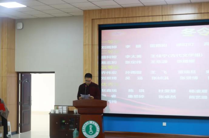 典礼伊始,张霞丹老师向师生们介绍了到场嘉宾。典礼第一项议程,由牛海龙老师宣读第三届学生线上学术冬令营获奖学生名单,刘雨婷等7名学生获得一等奖,盛柯娅等11名学生获得二等奖,乔伟宏等15名学生获得三等奖,赵鑫瑞等17名学生获得优秀奖,beat365官网网页版教师为获奖学生颁奖。接下来教师代表和获奖学生代表分别发表了感言。教师代表赵玉龙老师作为冬令营活动的发起人,对本届学生线上学术冬令营活动进行了总结,表达了对学院学子的期许和对未来学院学术工作的展望。获奖学生代表刘景琦、高玉凤同学与同学们分享了自己的学习方法,并向指导老师们表示感谢。