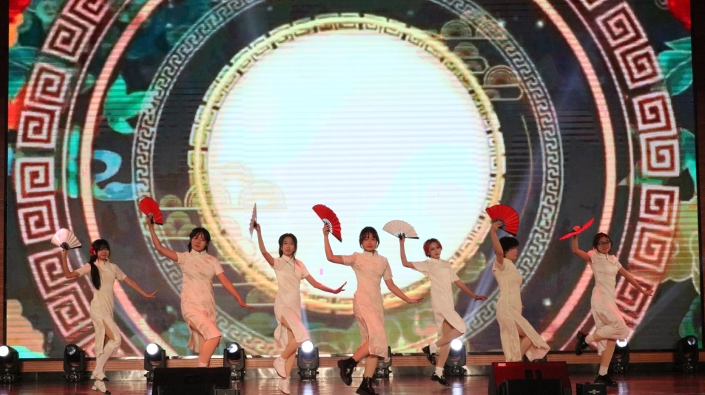 晚会正式开始前,游戏环节火热了现场气氛。舞蹈《平安顺遂》拉开迎新晚会的序幕。华灯璀璨,曳裙舞扇;鼓点激昂,旋律悠扬。少年挥斥方遒,诵家国在怀,奏时代华章。学子们展风采,抒壮志;舞袖翩翩,颂诗朗朗。此次晚会充分展示beat365官网学子们锐意进取的昂扬风貌和奋楫笃行的奋发精神。