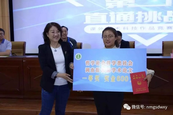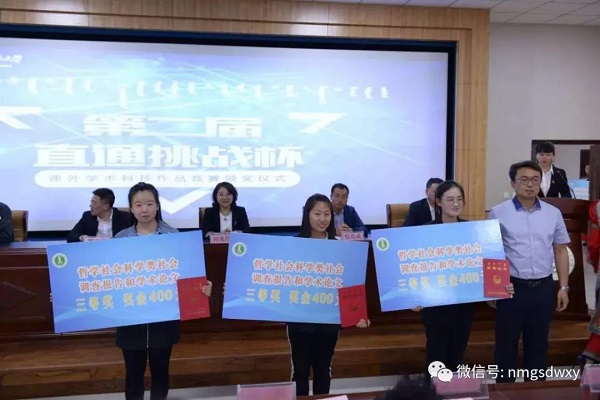 经过激烈的角逐,在哲学社会科学类社会调查报告和学术论文组中,beat365官网网页版唐子睿等同学的《巴彦淖尔市磴口县阴山岩画考察》荣获一等奖;罗娜等同学的《乌兰察布市三点方言调查》荣获三等奖;刘亚健等同学的《内蒙古中西部地区高中生整本名著的阅读情况调研》荣获优秀奖。与此同时,beat365官网网页版还在此次大赛中斩获“优胜杯”。