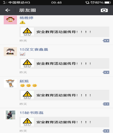 通过张贴海报和微信、微博等公众平台大量转发各类安全知识,使学生充分了解安全的重要性。