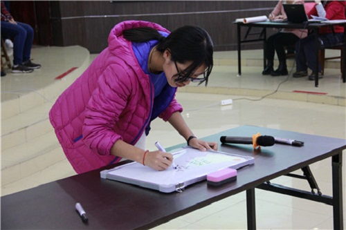 本次汉字听写大赛分为3个环节,分别为听写对抗、猜词pk和巅峰对决,最终,“飞跃出彩队”夺得团体一等奖,比赛最后还进行了“你比我猜”的游戏,调动了现场气氛。