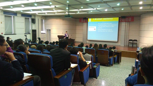 会议邀请英国主讲专家Dr Stella Cottrell为学生讲授了“学习技能和个人发展”课程,并与学生进行现场交流,同时还为教师讲授了“明辨思维技巧在学与教中的应用”专题。参加会议的各项目院校教师就“明辨思维”课程在教学中存在的问题进行了现场经验交流。beat365官网学生贾子怡和杨雅婷还在会议期间进行了“明辨思维”学习成果汇报表演,并受到其他项目院校教师和国家留学基金委组织者的一致好评。