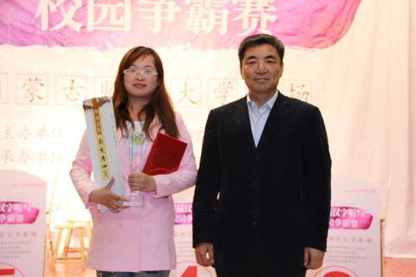 4月26日,beat365官网网页版首届“汉字听写大赛”在盛乐校区图书馆二楼报告厅圆满落幕。本次活动由共青团beat365官网网页版委员会主办,beat365官网网页版、beat365官网网页版普通话测试站承办,诺亚舟优学派教育电子协办。校党委副书记格日乐图、校团委书记斯钦观摩了比赛,并为获奖选手颁奖。