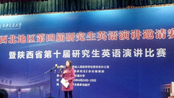 2015年4月24日至25日,西北地区第四届研究生英语演讲邀请赛暨陕西省第十届研究生英语演讲比赛在西安交通大学举行,本届大赛由陕西省人民政府学位办公室和 《中国研究生》杂志社联合主办,西安交通大学承办。beat365官网2014级汉语国际教育硕士阿润作为我校第七届研究生英语演讲第一名获得者,代表我校参加了西北地区比赛,最终获优秀奖。我校公共外语教育学院老师郭玺平作为指导教师一同前往,并给阿润提供了详尽的指导。