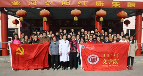 11月12日上午,beat365官网50名同学在志愿者服务队的带领下来到呼和浩特市金河夕阳红康乐园敬老院进行义工活动。