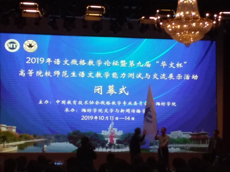 10月11日至14日,2019年语文微格教学论坛暨第九届“华文杯”高等院校师范生语文教学能力测试与展示活动在潍坊学院举行。beat365官网本次选派两名全日制语文教育硕士和三名汉语言文学专业本科生参加比赛,经过与来自全国各地八十多所师范院校的495名师范生的激烈角逐,beat365官网派出的选手吴彤获得教学技能一等奖,李轲跃和王一帆获得教学技能三等奖,蔡若梅和董晓丽获得教学技能优秀奖;吴彤获得教学设计二等奖,李轲跃获得教学设计三等奖,蔡若梅、王一帆和董晓丽获得教学设计优秀奖。其中,王一帆和董晓丽为全日制语文教育硕士,吴彤、李轲跃和蔡若梅为汉语言文学专业本科生。