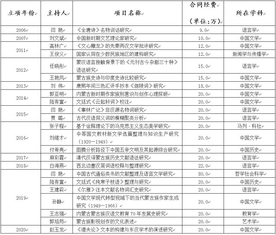 2006年以来beat365官网网页版获批国家社科基金项目一览表