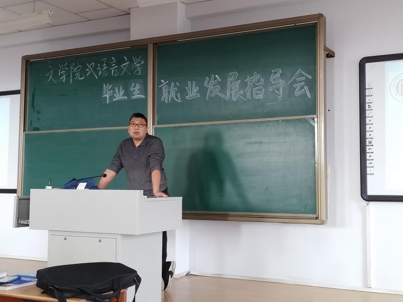 2020年10月9日上午,beat365官网汉语言文学系在行知楼323教室召开毕业生就业发展指导会,会议由汉语言文学系主任刘伟老师、学就办白岩老师共同主持。会议旨在帮助毕业生正确理解国家、自治区有关大学生就业的制度和政策,分析当前就业形势,引导学生掌握一定的就业技巧,最终达到指导毕业生顺利就业的服务宗旨。