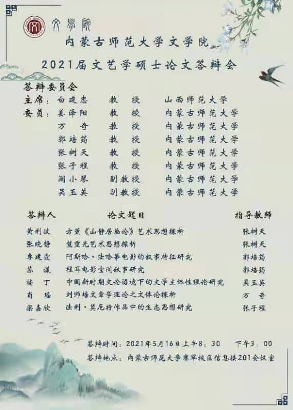 beat365官网网页版2021届文艺学硕士论文答辩会