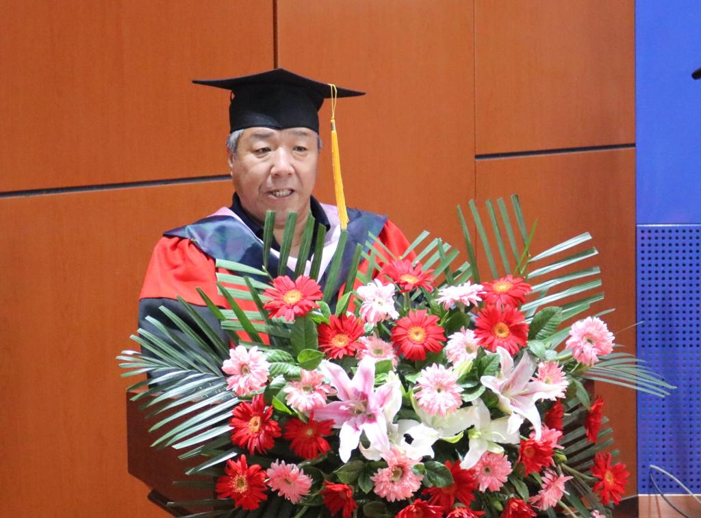 毕业典礼在激昂的国歌声中拉开帷幕。随后,beat365官网网页版党委书记高林广教授致辞。高书记简要介绍了本届毕业生情况以及beat365官网网页版研究生教育的发展现状,并向本届毕业的硕士研究生表示了祝贺。他希望毕业生秉承“砥砺德行,为学日益”的院训,顺利开启人生新征程。