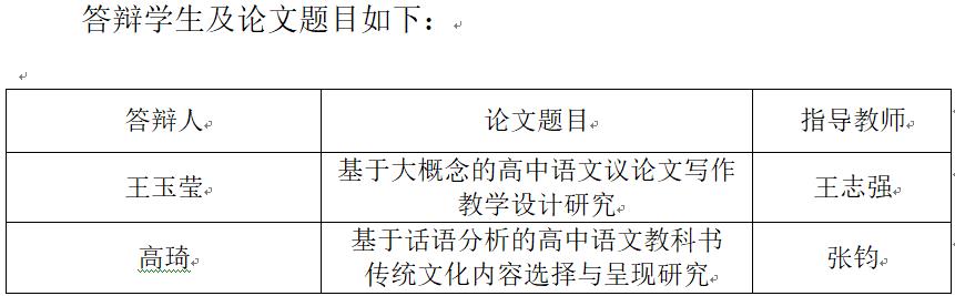 语文课程与教学论专业定于2022年5月25日上午(8:30—12:00)召开2022届硕士学位论文答辩会。根据《关于做好2022年上半年博士、硕士研究生学位授予工作的通知》《关于做好疫情防控期间2022届研究生毕业答辩工作的通知》的要求,本次答辩采用的方式为“现场+线上”的答辩形式,现场答辩会设在田家炳教育书院432,使用的线上会议软件为钉钉会议,入会口令:24971516268。本次答辩会特别邀请了西北师范大学教育学院李金云教授担任答辩主席。欢迎广大师生参加交流。
