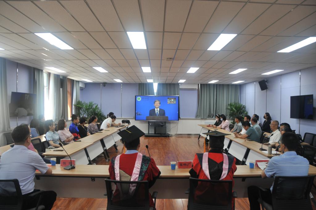 在毕业典礼正式开始之前,工作人员播放毕业生精心制作的校园风景短片,学院领导、教师与2022届全体毕业生共同回忆他们在校园度过的青葱岁月、点点滴滴。