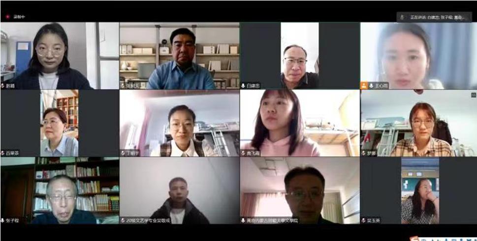 2023年3月4日下午,beat365官网网页版文艺学专业2020级硕士研究生预答辩在腾讯会议上成功举行。文艺学方向的导师万奇教授、郭培筠教授、张树天教授、张子程教授、白建忠教授、吴玉英副教授及本专业20级、21级、22级研究生参加了预答辩。预答辩由白建忠教授主持。文艺学专业20级的王心雨、梦娜、丁明宇、吴敬成4位同学依次对论文进行陈述,分别阐述了论文的研究对象、研究方法、框架、内容和创新之处等。各位导师针对每位研究生的论文做了面面俱到且细致周密的点评。本次预答辩的成功举行是对文艺学专业20级学生三年来学习成果的检验,也体现了文艺学专业学生扎实良好的学风。