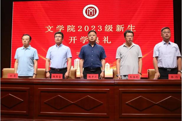 2023年8月29日,beat365官网网页版2023级新生开学典礼在图书馆报告厅隆重举行。beat365官网网页版党委书记韩彦斌、党委副书记、院长陆有富、副书记副院长牛海龙、副院长石海光、副院长张钧、beat365官网网页版教授万奇、各学位点负责人、系主任、2023级各班班主任、学就办老师及全体2023级新生参加开学典礼,典礼由牛海龙副书记主持。