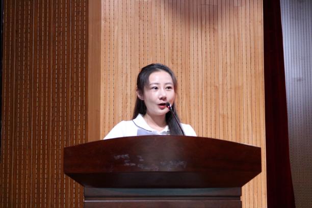 典礼第三项,由研究生新生代表比较文学与世界文学专业学生刘萌萌发言,她在回忆与师大的五年中,向新生们介绍了学院老师引人入胜的课堂,介绍了她求学道路的“柳暗花明”。她鼓励学弟学妹们“不断的寻找与探索,大胆走出自己的舒适区,带着务实的态度,大胆地去尝试和摸索,一步一个脚印”。