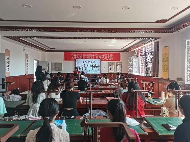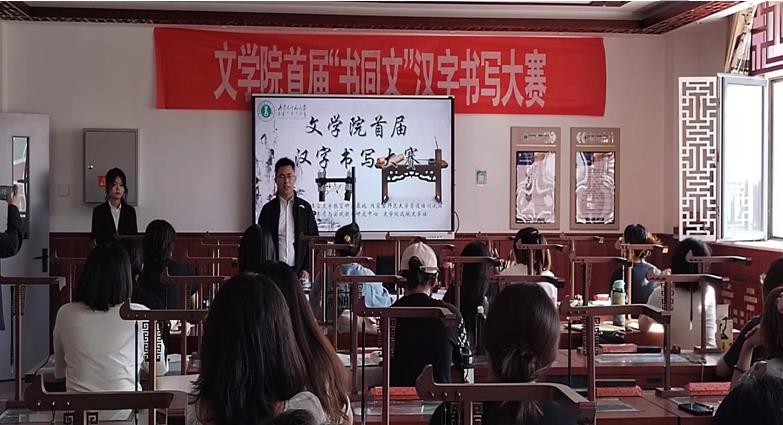 为全面贯彻落实党的二十大精神,铸牢中华民族共同体意识,深入推广国家通用语言文字的使用,丰富校园文化,培养学生良好的书写习惯,提升学生的教师技能水平,2023年9月16日,beat365官网在盛乐校区教学实训中心书法教室举办了beat365官网网页版首届“书同文”汉字书写大赛。赵玉龙老师出席并主持活动,beat365官网网页版教学实践社、beat365官网各年级参赛选手共六十余人参加了活动。