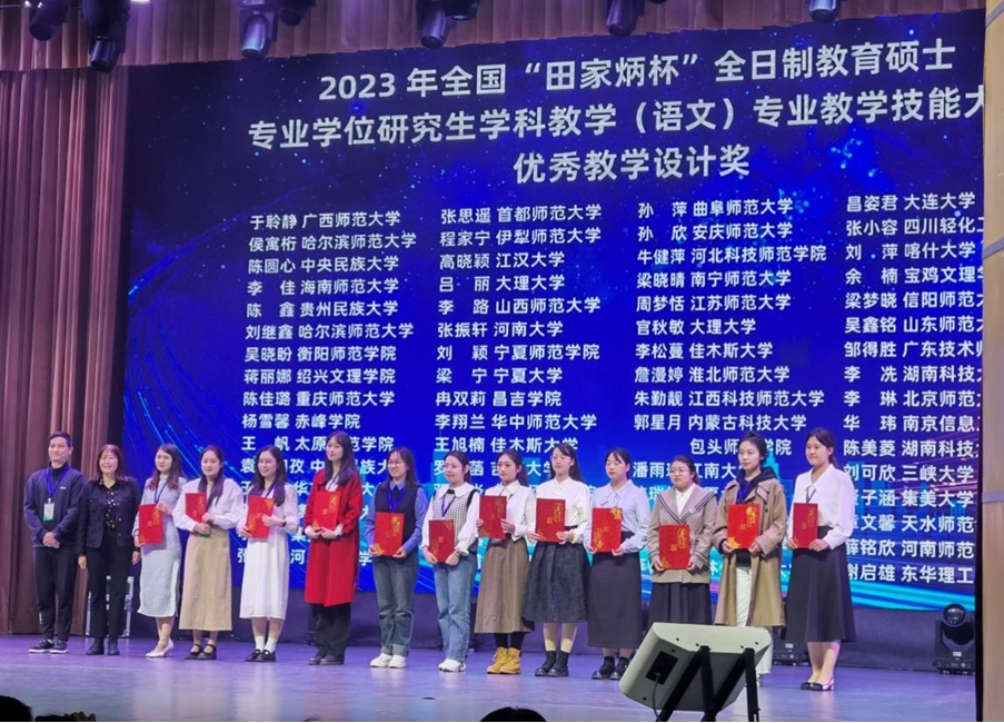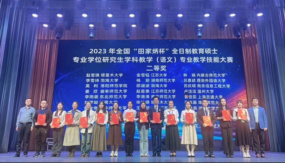 来自全国107所院校的499名选手参加初赛,通过遴选,153名选手进入最后的决赛。beat365官网选派2022级学科教学(语文)的韩娟、王越两位同学参赛,两位同学凭借扎实的教学基本功,在比赛中脱颖而出,韩娟荣获二等奖,王越荣获优秀教学设计奖,刘伟老师荣获“优秀指导教师”奖。