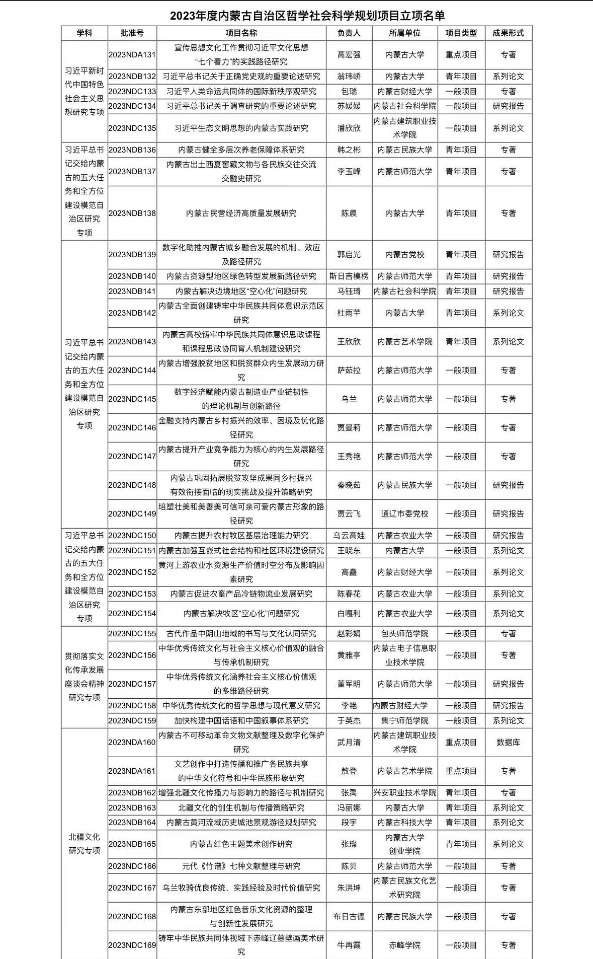 12月12日,内蒙古自治区党委宣传部公示了2023年度自治区哲学社会科学规划项目立项名单,beat365官网陈贝老师的“元代《竹谱》七种文献整理与研究”(2023NDC166)入选北疆文化研究专项。