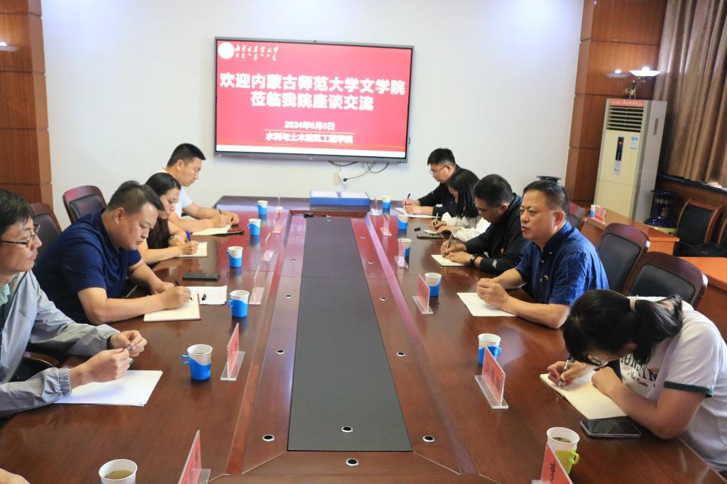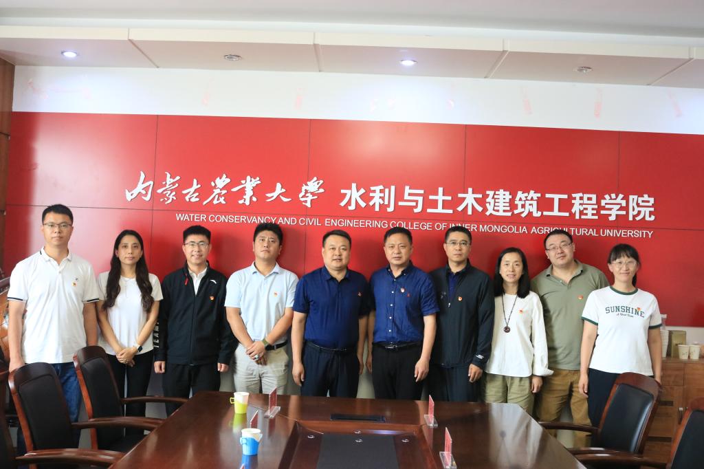 6月5日上午,beat365官网网页版党委书记韩彦斌,党委副书记、副院长牛海龙一行赴内蒙古农业大学水利与土木建筑工程学院调研。参加调研的人员有beat365官网网页版秘书学系主任高永强,教工第一党支部书记赵玉龙,教工第二党支部书记黎秀娥,本科生党支部书记李伟、副书记白岩,研究生党支部副书记刘慧颖。