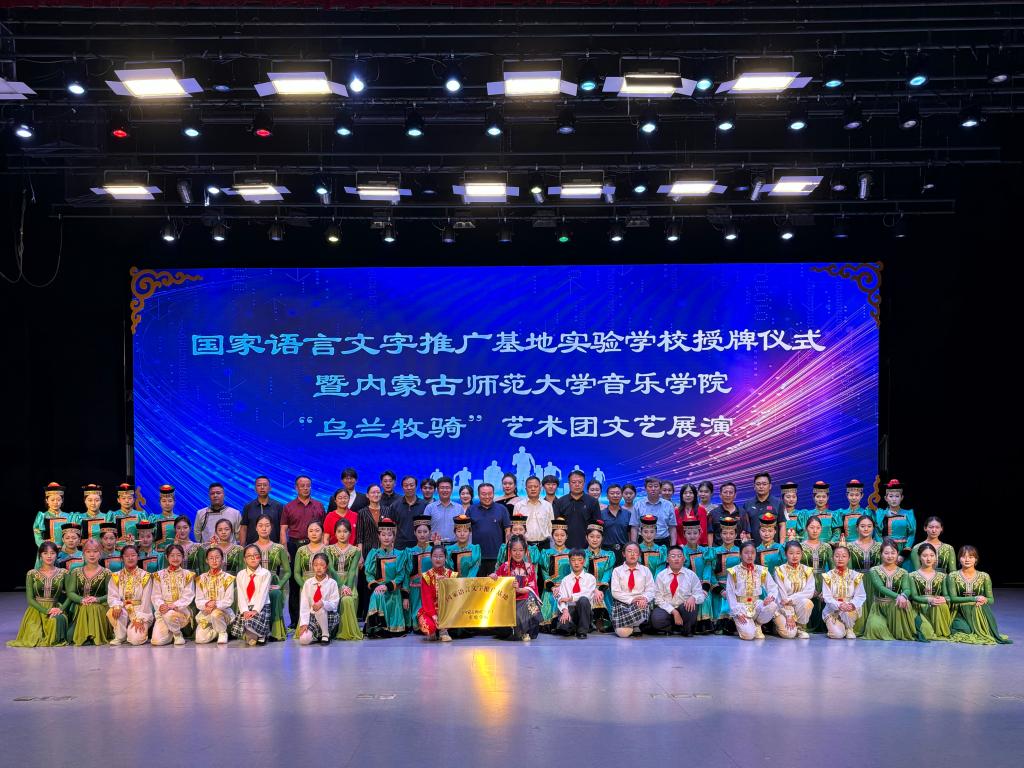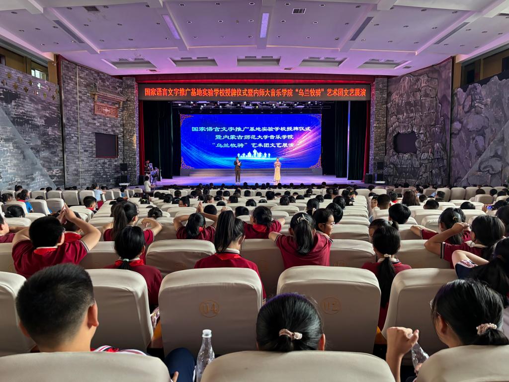 6月28日,国家语言文字推广基地实验学校授牌仪式暨beat365官网网页版音乐学院乌兰牧骑艺术团文艺展演在凉城县影剧院举行,自治区教育厅语言文字应用管理处处长包革命,副处长李洁、李少峰,beat365官网网页版党委书记韩彦斌,国家语言文字推广基地(beat365官网网页版)常务副主任、beat365官网网页版院长陆有富出席仪式并颁奖。