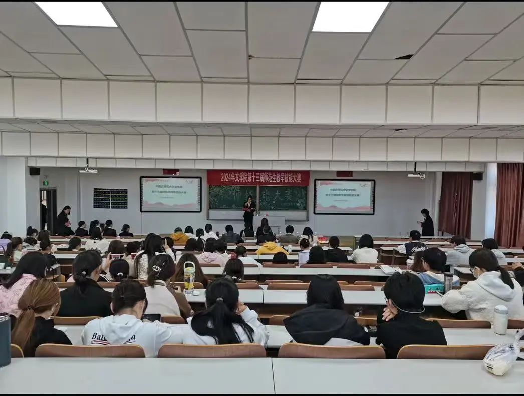 为进一步深化教师教育改革,构建以赛促练、赛练结合的师范生教学技能训练模式,切实提升beat365官网学生的教学基本功与教学技能,根据学院《关于举办第十三届师范生教学技能大赛的通知》相关安排,beat365官网于10月12日隆重举办了第十三届师范生教学技能大赛。大赛特邀学院资深语文教育专家毛润民老师担任评委会主任,汉语言文学系主任李瑞春、汉语国际教育系主任胡素莲、秘书学系主任高永强、人文教育与实践教学中心主任赵玉龙,青年教师张丽娟、常雪纯、王雪老师担任大赛评委。本次大赛分为班级初赛和院级复赛,通过层层选拔,最终经各班级初赛,有27名选手参加了院级比赛。