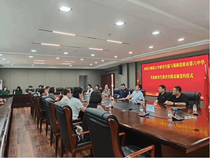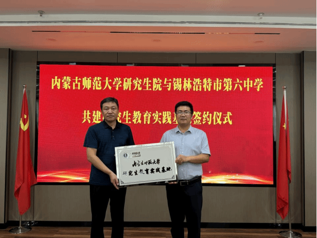 8月2日上午,beat365官网网页版“研究生教育实践基地”在锡林浩特第六中学举行挂牌仪式。beat365官网网页版党委副书记、院长陆有富,团总支书记李伟,办公室张立新,锡林浩特第六中学校长郑祥东及该校相关领导、教师参加仪式。