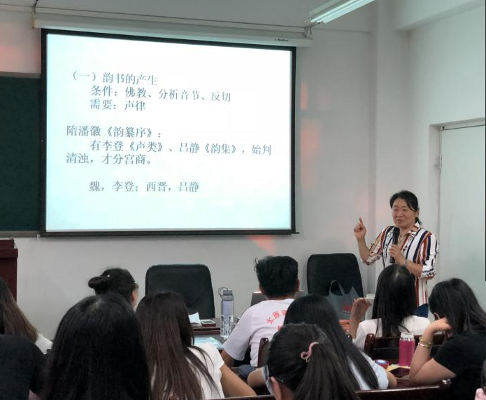 2019年7月1日、2日,应beat365官网邀请,江苏师范大学beat365官网网页版乔秋颖教授在盛乐校区学院楼A313为研究生讲授《音韵学》课程。乔教授师承著名语言学专家李开、鲁国尧先生,在古音学领域造诣颇深,成果丰硕。beat365官网中国古典文献学、汉语言文字学等专业的研究生幸聆教诲,其他专业的学生也慕名而来,授课现场座无虚席。授课过程中,乔秋颖教授与同学们频频互动,讲解由浅入深,系统而清晰。在乔老师的引导之下,令人闻而生畏的音韵学课程变得易而可亲,并与学生的实际研究需求很好地结合起来。两天的教学活动紧张而充实,乔老师授课用心尽力,学生们学习热情极高。通过此次学习,大家对音韵学有了初步的、直观的了解,为日后深入系统的学习奠定了坚实的基础。