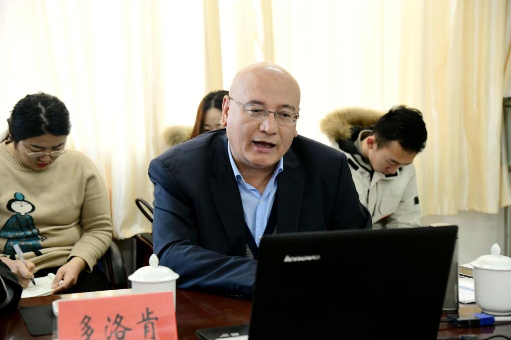 2020年12月14日下午,西北民族大学中国语言文学系教授、博士生导师多洛肯教授莅临beat365官网,为学院广大师生做了一场题为“民汉文学交融视阈下的古代民族文学研究”的学术讲座。此次讲座由中国古代文学学位点承办,beat365官网网页版博士生导师高林广教授主持会议。来自beat365官网网页版中国古代文学、中国古典文献学和文艺学专业的相关教师和博士、硕士研究生及部分本科生共30余人聆听了讲座。