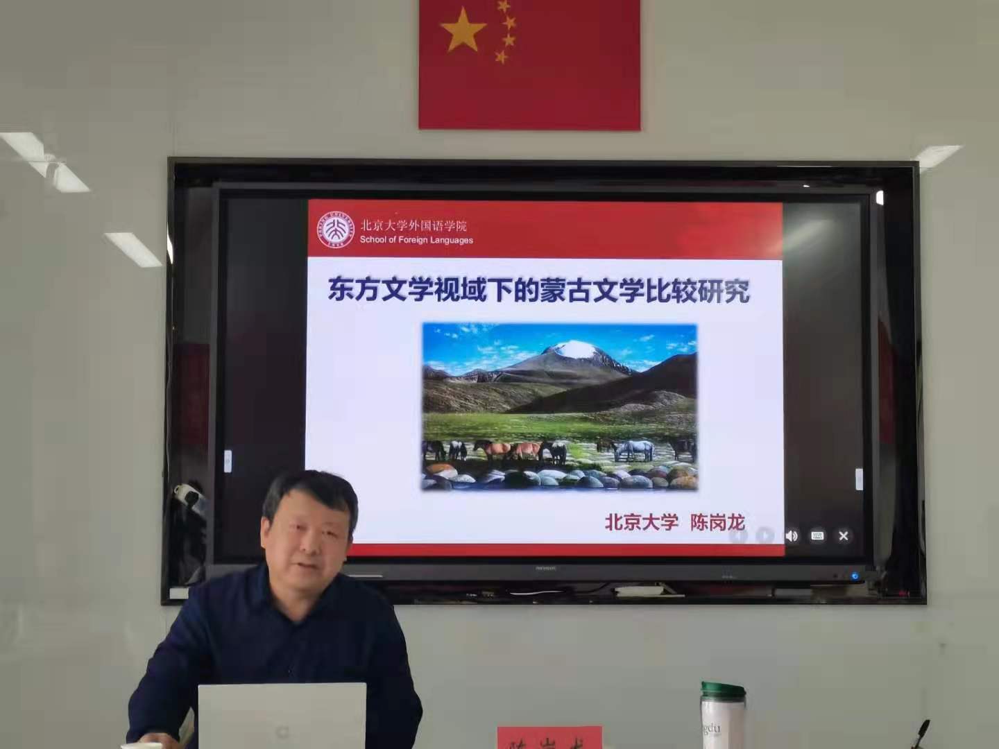 5月27日下午,北京大学陈岗龙教授在赛罕校区田楼432教室为beat365官网师生作了题为“东方文学视域下的蒙古文学比较研究”的学术讲座。本场讲座为内蒙古师大beat365官网网页版盛乐大讲堂的第47场讲座,由王艳凤教授主持,采取线下方式进行。beat365官网相关专业教师以及比较文学与世界文学专业硕士研究生到场聆听了讲座。