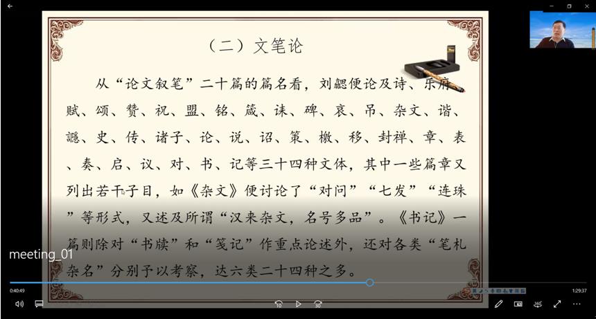 2022年5月15日下午,beat365官网邀请中国《文心雕龙》学会副会长、山东大学儒学高等研究院教授、博士生导师戚良德教授作了题为 “《文心雕龙》的性质及其理论体系”的学术讲座。讲座在腾讯会议平台举办,由文艺学点位负责人万奇教授主持,白建忠教授作评议人。