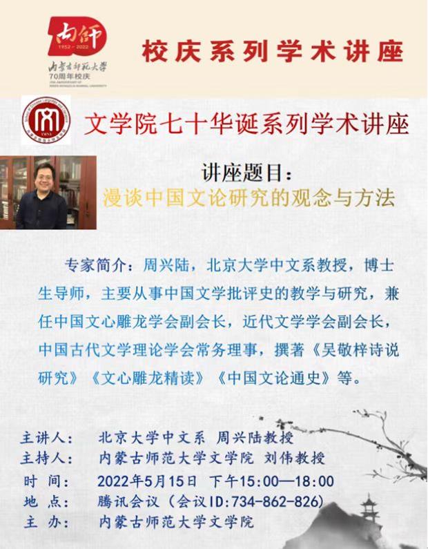 beat365官网中国古代文学专业于2022年5月15日上午召开2022届硕士学位论文答辩会。本次答辩会特别邀请了北京大学中文系教授、博士生导师周兴陆担任答辩主席。答辩后当天下午,周兴陆教授为beat365官网师生做了题为《漫谈中国文论研究的观念与方法》的精彩学术讲座。