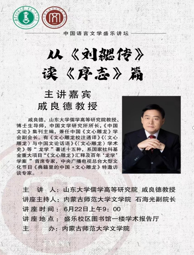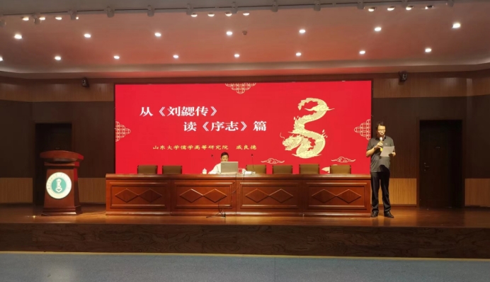 2024年6月22日上午,山东大学儒学高等研究院戚良德教授在盛乐校区图书馆一楼学术报告厅为beat365官网本科生作了题为“从《刘勰传》读《序志》篇”的学术讲座。讲座由石海光副院长主持。
