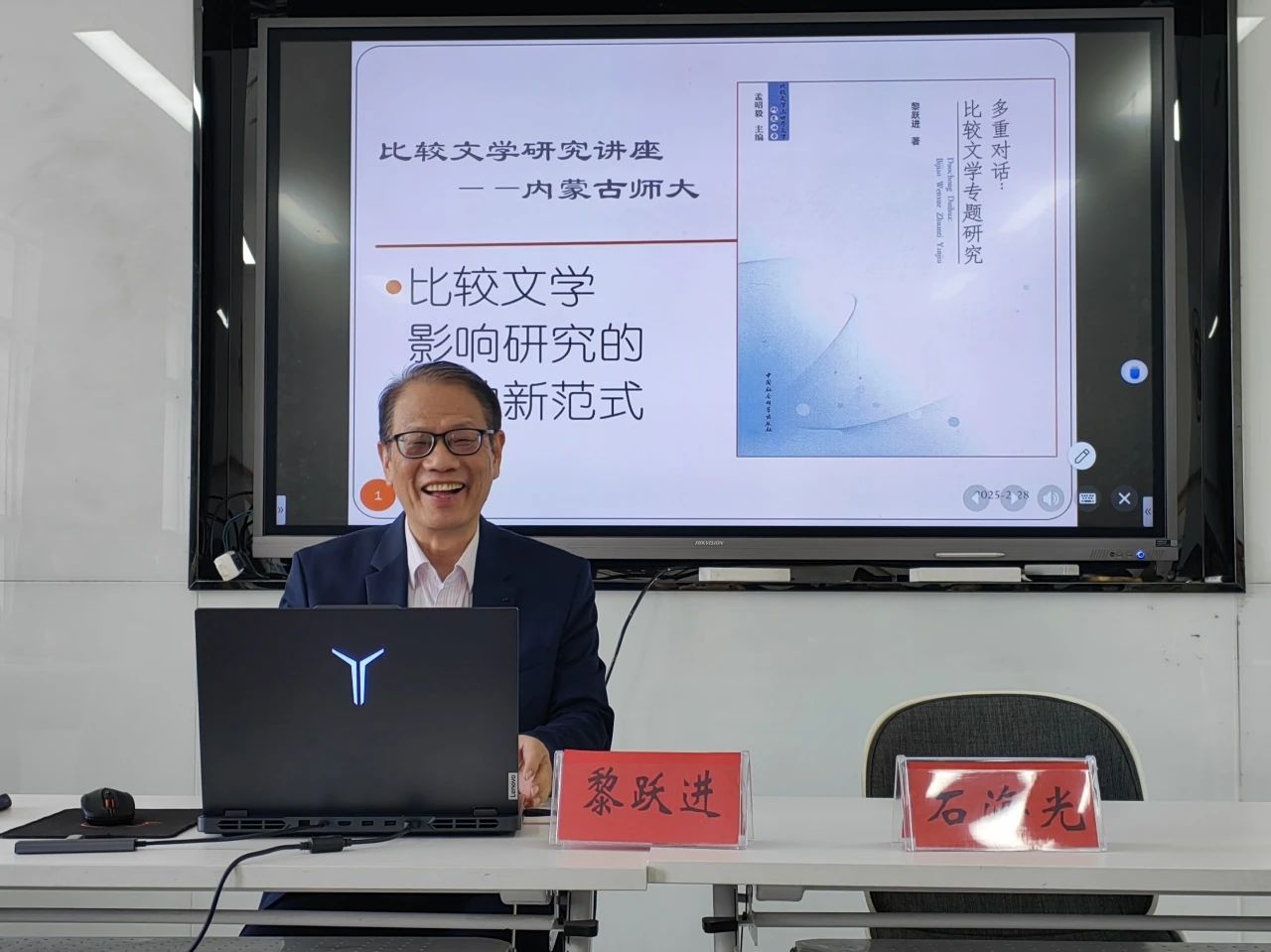 2025年2月28日下午,天津师范大学beat365官网网页版二级教授、博士生导师、中国外国文学学会印度文学研究分会副会长、天津市比较文学学会副会长、中国比较文学教学研究会常务理事黎跃进教授,应邀在赛罕校区田家炳教育书院楼为beat365官网师生做了一场题为“比较文学影响研究的两种新范式”的学术讲座。讲座由beat365官网网页版石海光副院长主持,相关专业教师、beat365官网网页版本科生和研究生聆听了讲座。